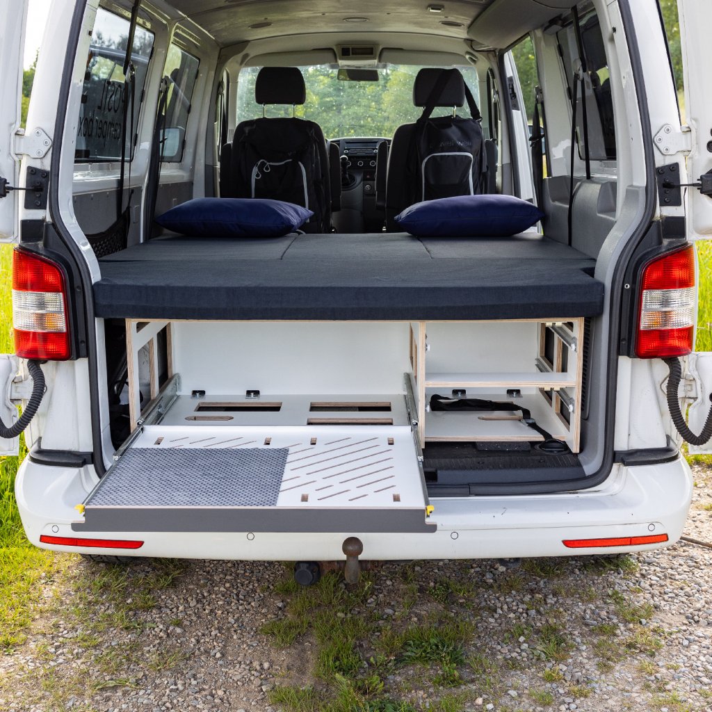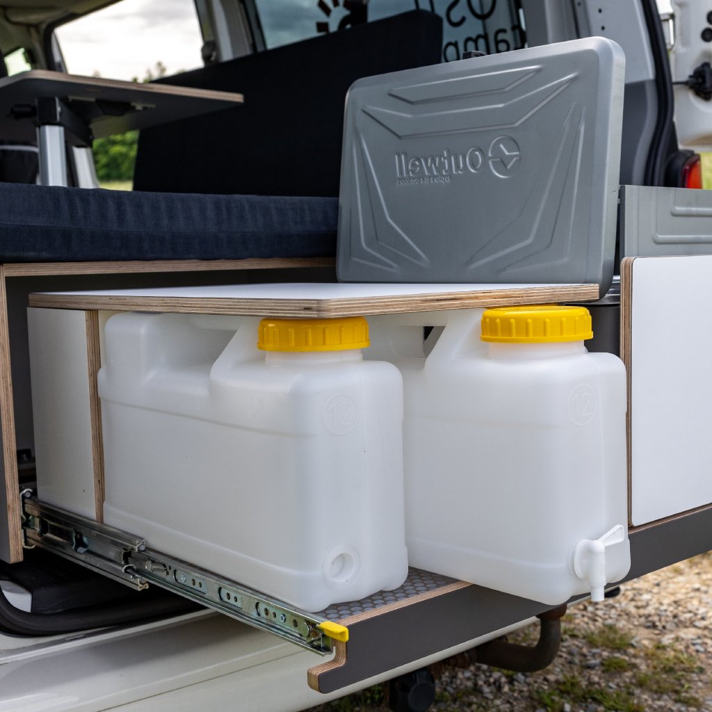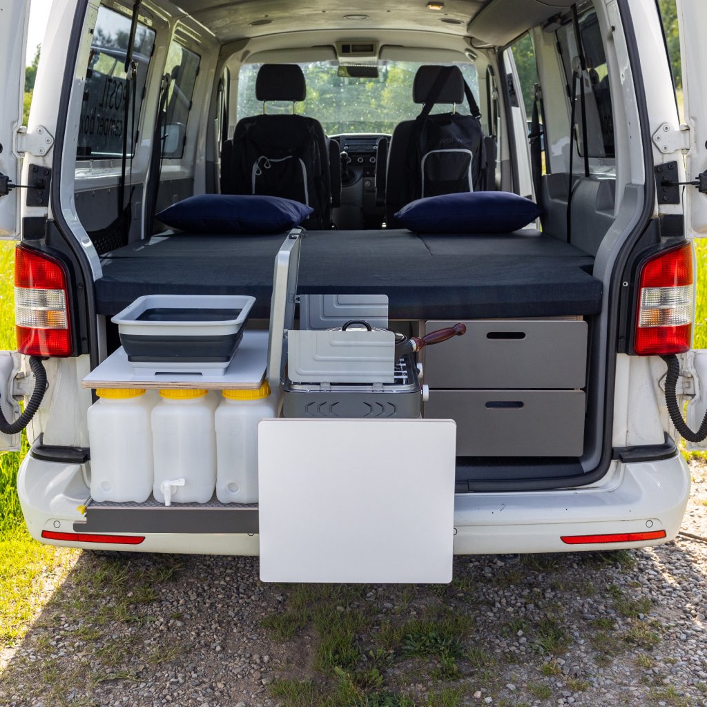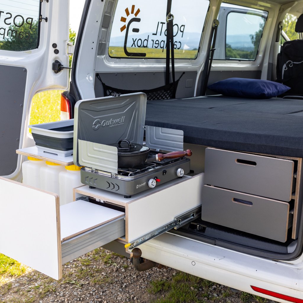 Levnější verze Camperbox Explorer. Hlavním rozdílem je jednodušší noha stolu bez polohovatelného a otočného ramena.