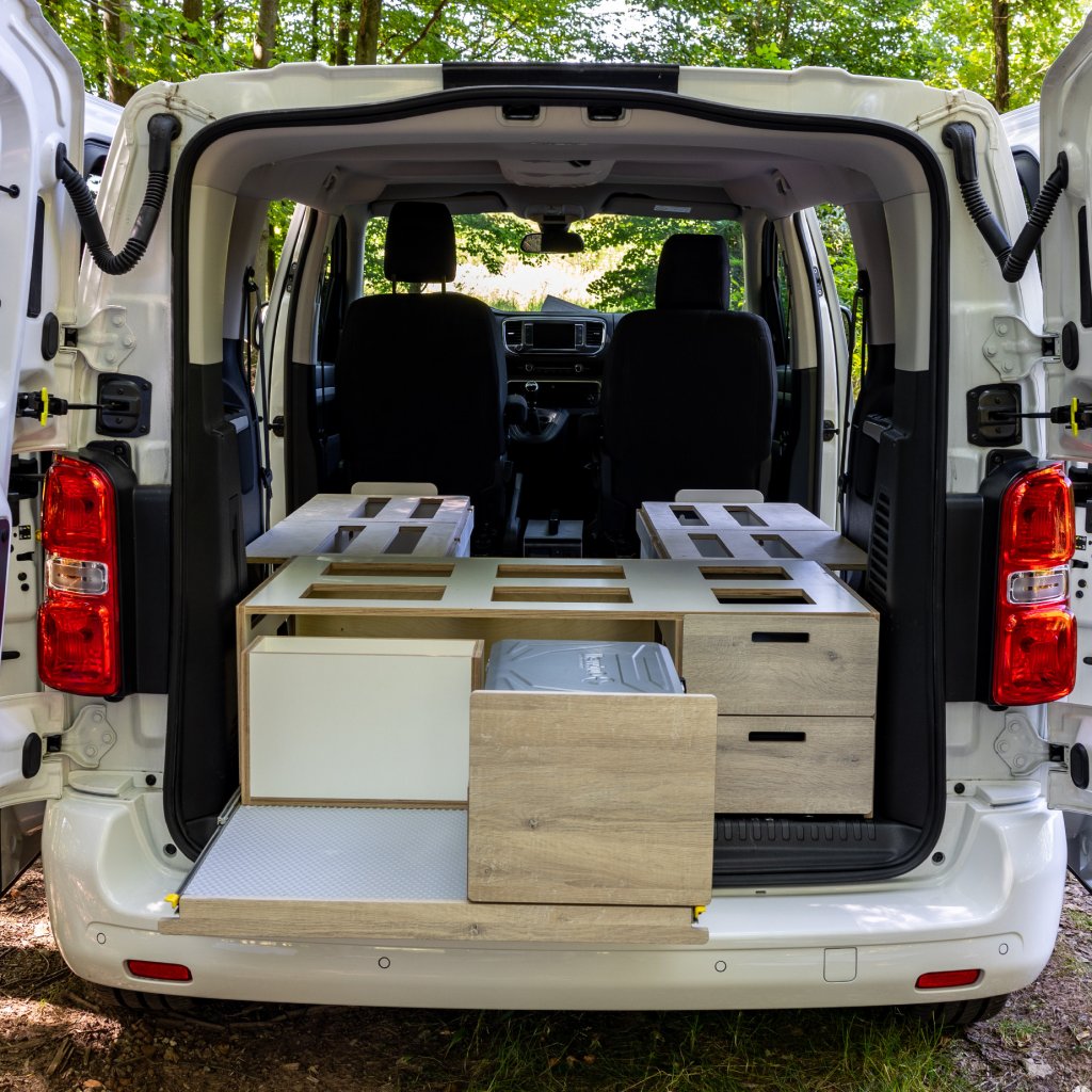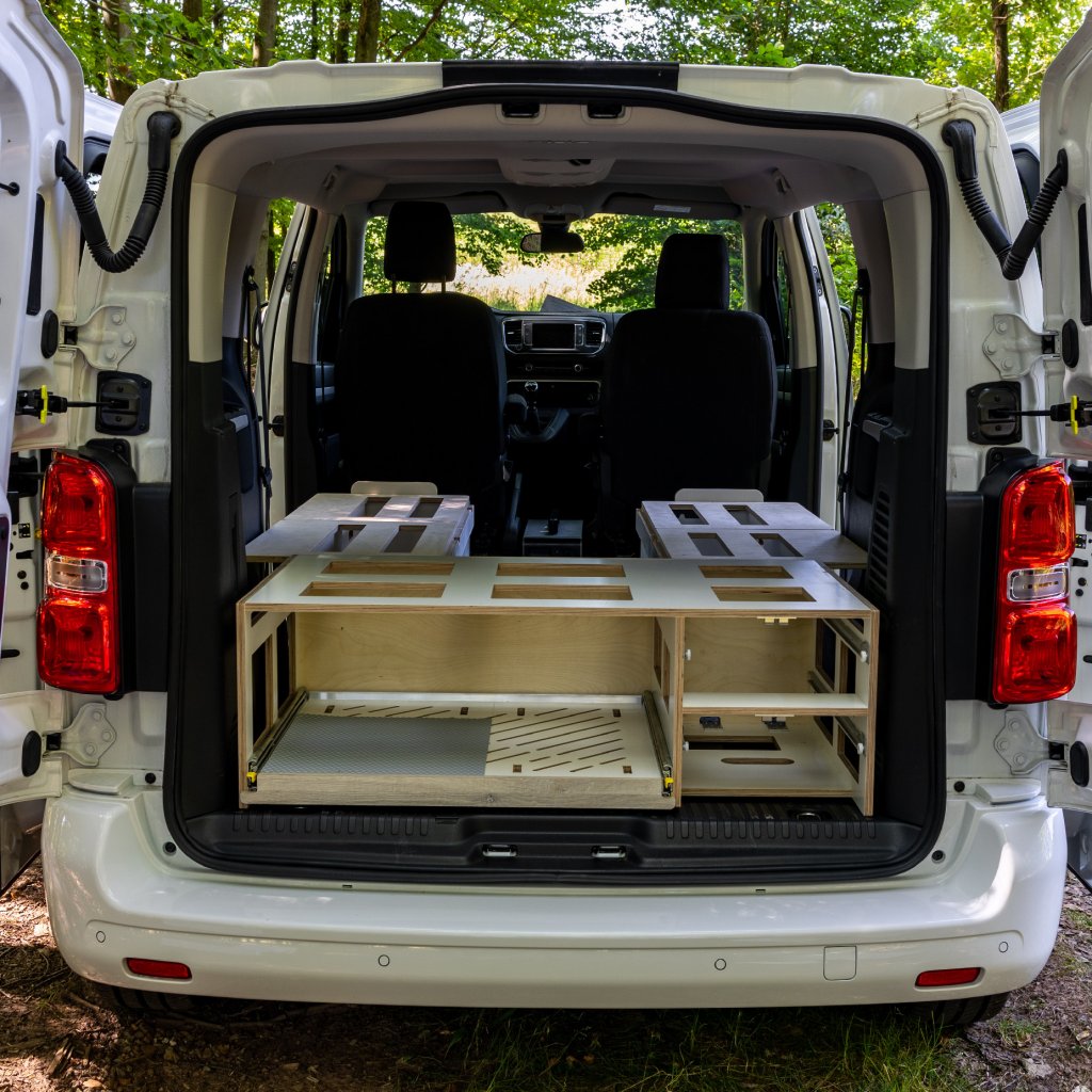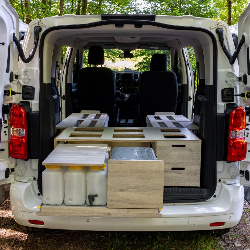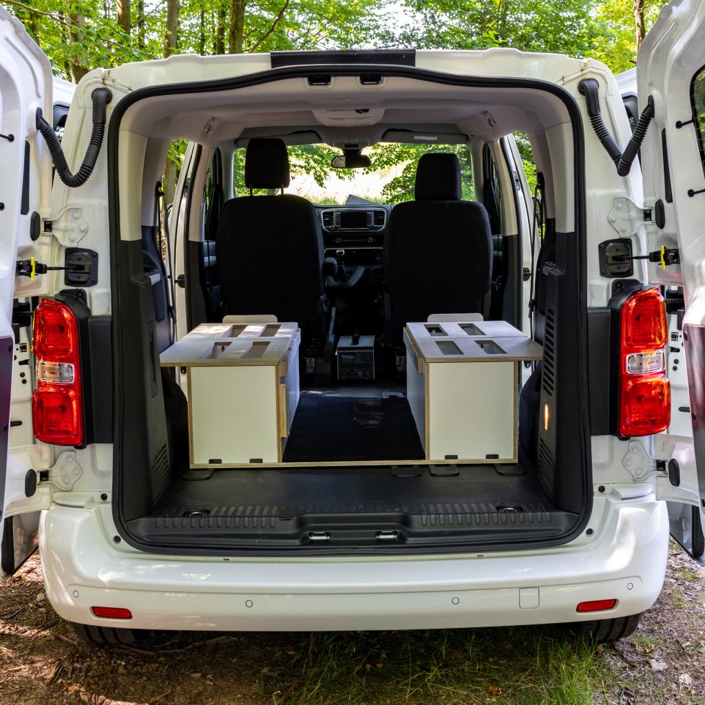 Levnější verze Camperbox Explorer. Hlavním rozdílem je jednodušší noha stolu bez polohovatelného a otočného ramena.