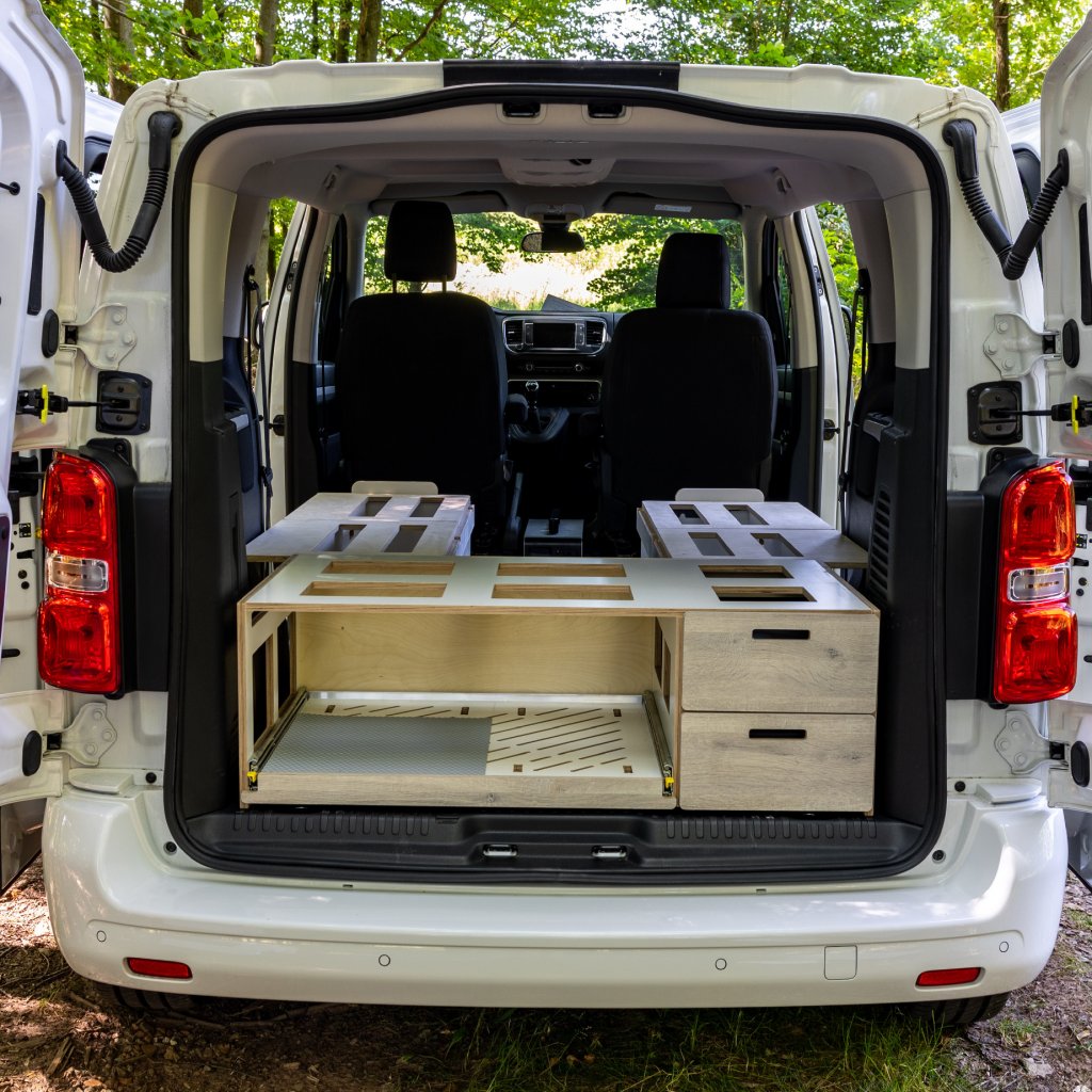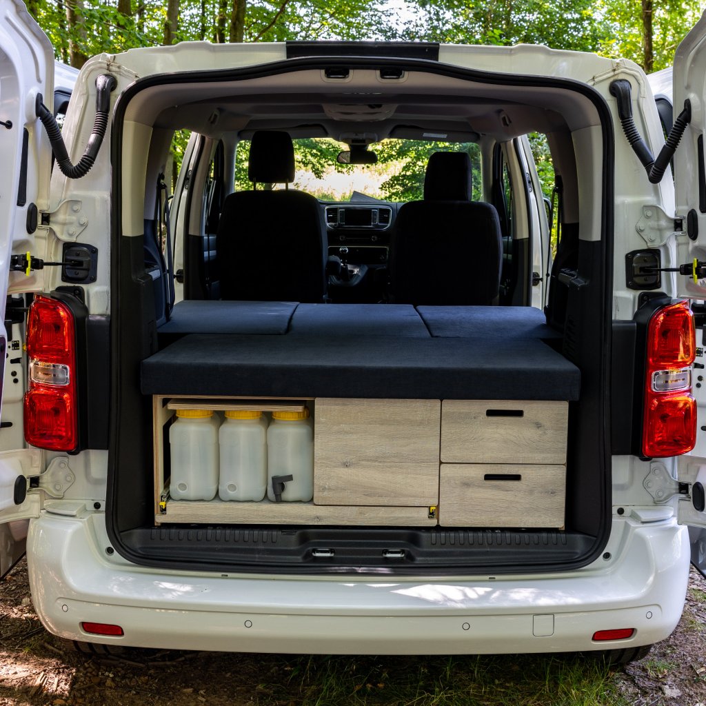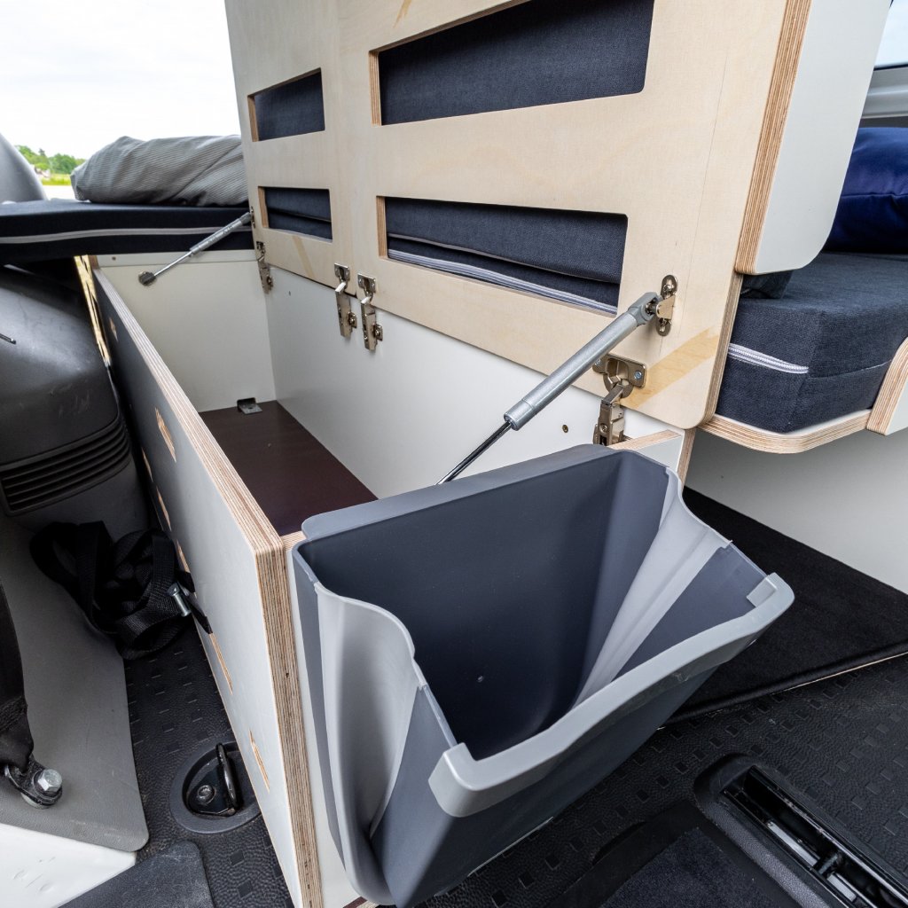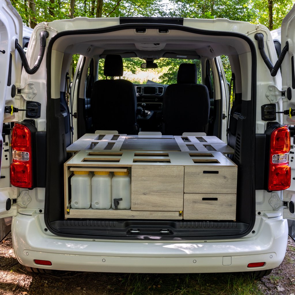 Levnější verze Camperbox Explorer. Hlavním rozdílem je jednodušší noha stolu bez polohovatelného a otočného ramena.