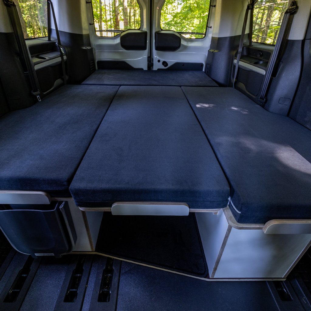 Obytná vestavba do dodávky s kuchyňkou, sezením do U, rozkládací postelí a stolem
